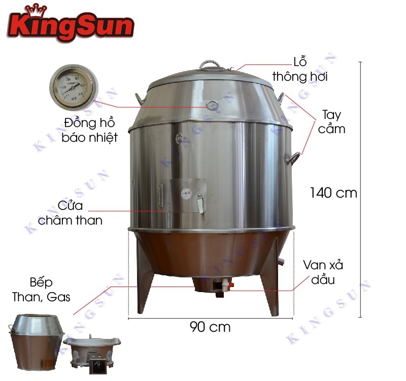 Toàn bộ lò quay gà vịt bằng than được làm bằng inox nên đảm bảo vệ sinh an toàn thực phẩm, hạn chế bị gỉ sét, dễ vệ sinh.. Thiết kế thành lò 2 lớp Inox, lớp giữa là foam cách nhiệt dày giữ nhiệt tốt, lên nhiệt nhanh.