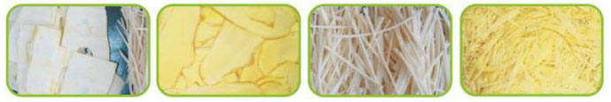 Chồi tre hoặc khoai tây, củ cải, lát gừng hoặc mảnh vụn được chế biến để làm cho bề mặt cắt mịn và gọn gàng. Thích hợp cho thị trường, phân phối thức ăn nhanh hoặc nhà máy chế biến thực phẩm. Độ dày và chiều rộng của cắt có thể được tùy chỉnh để cắt lưỡi cắt theo các thông số kỹ thuật tương ứng.