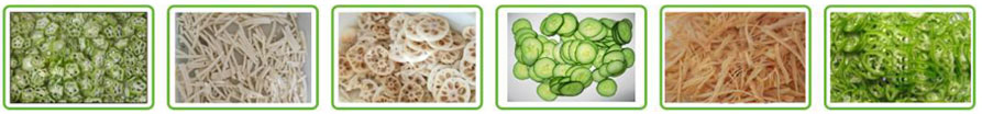 Cắt lát hành tây, tỏi, chive, cần tây, bắp cải, bắp cải Trung Quốc, sữa đông khô, rau bina, chip chuối và dưa hấu. Một thay thế đĩa dao, rễ có thể được cắt rau, chẳng hạn như măng, củ cải, dải khoai tây, lát. Thích hợp cho các căng tin trung tâm và công nghiệp chế biến rau quả.