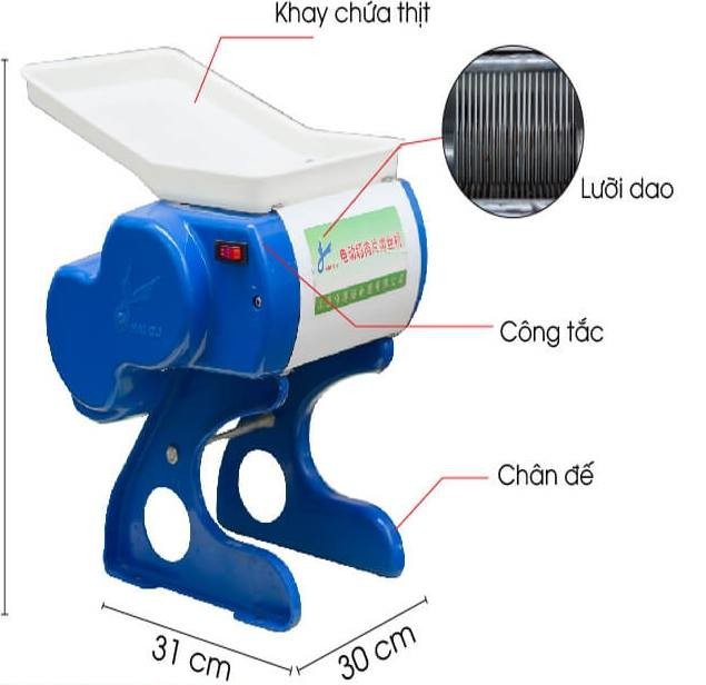 - Sản phẩm dễ dàng vệ sinh thích hợp cho các gian hàng bán thịt heo, thịt bò, cửa hàng bán thịt tươi sống,... Động cơ tích hợp mạnh mẽ lên đến 370W, motor đồng nguyên chất đảm bảo chất lượng và tuổi thọ lâu dài.